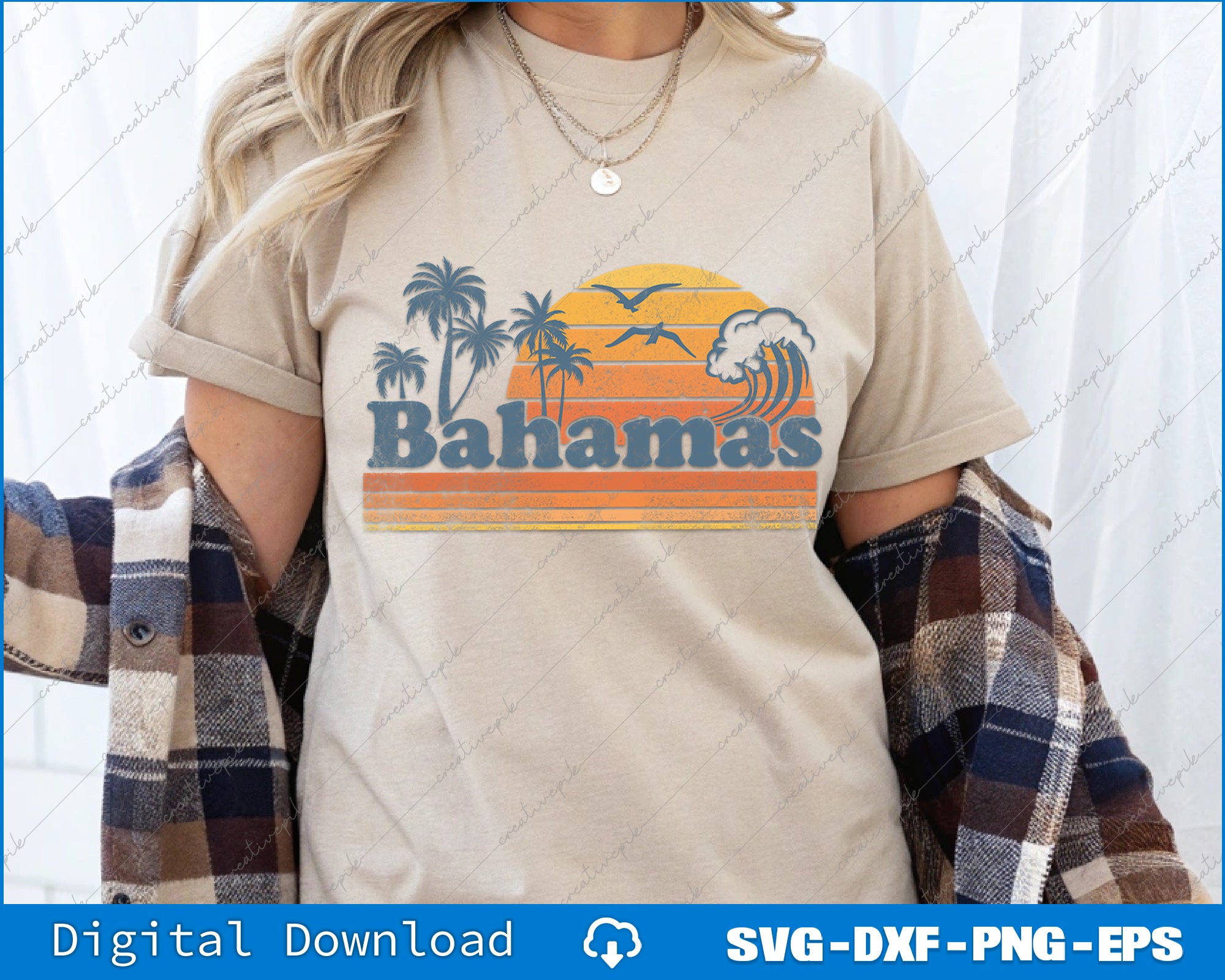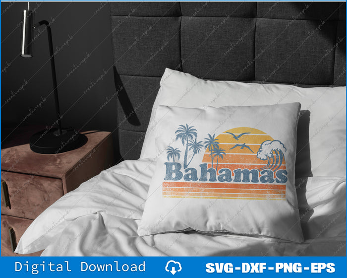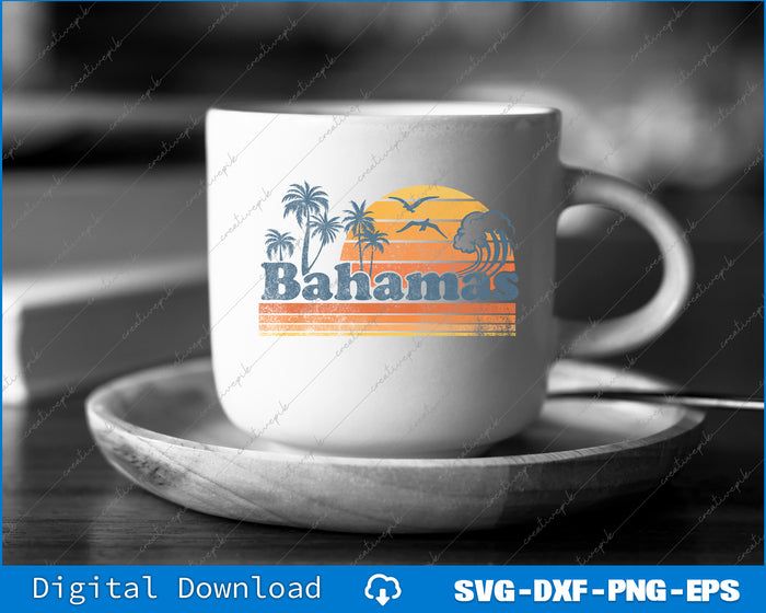 Bahamas Beach Summer Vacation Sunset Vintage 70's Retro SVG PNG Cutting Files