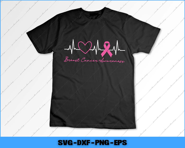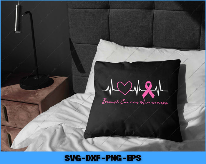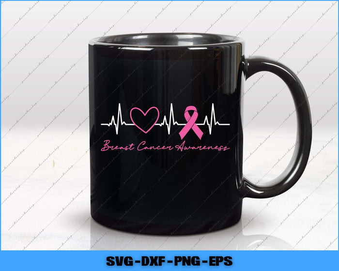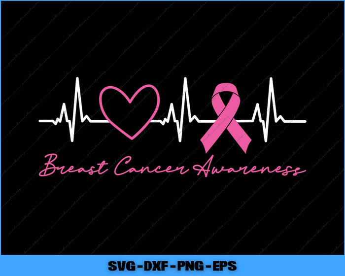 Breast Cancer Awareness Month Pink Ribbon Heartbeat Svg Png Cutting File