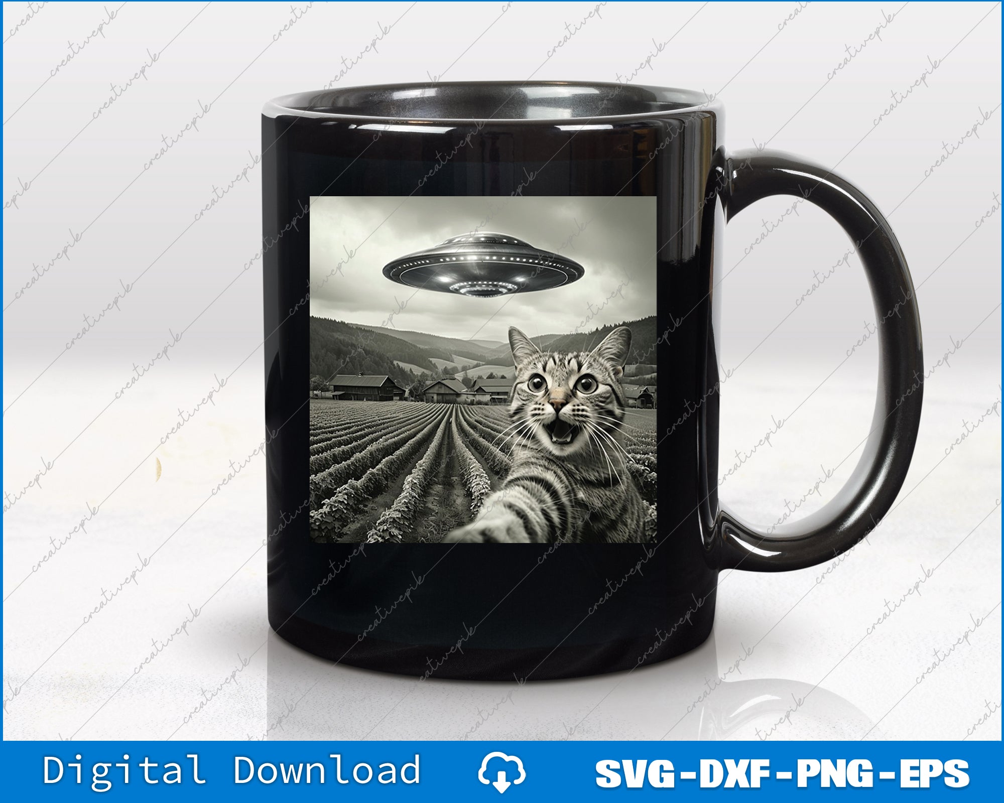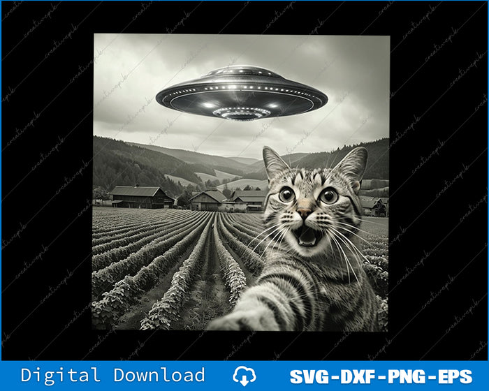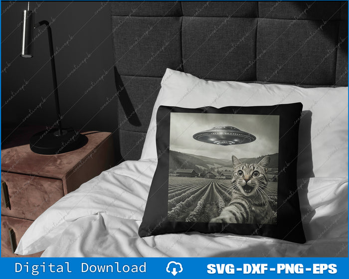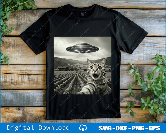 Cat Selfie With Alien UFO Funny Cat Gifts For Men Women Kid Png Printable File
