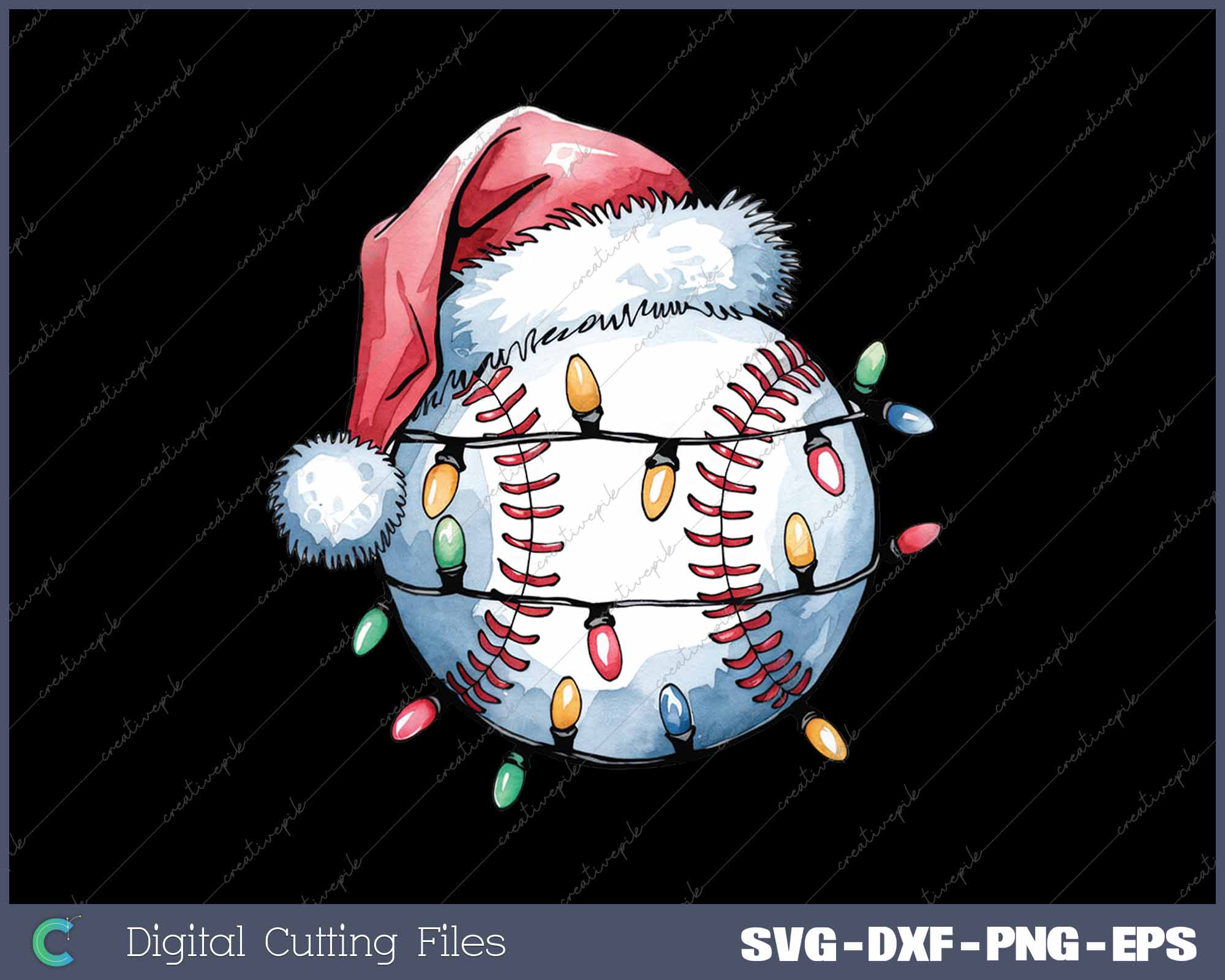 Christmas Baseball Xmas Santa Hat Ball SVG PNG Cutting Printable Files