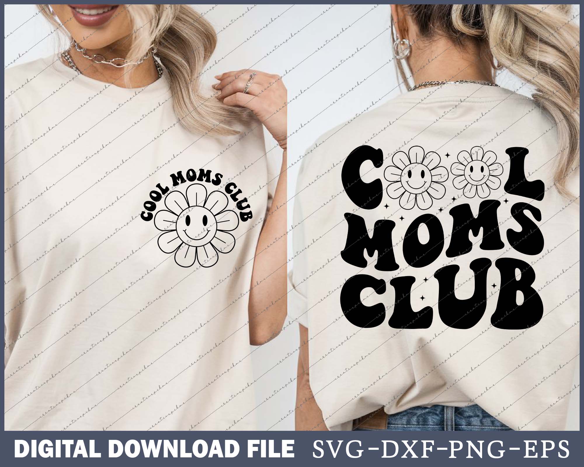 Cool Moms Club Groovy, Cool Moms Club SVG PNG Cutting Printable Bundle Files