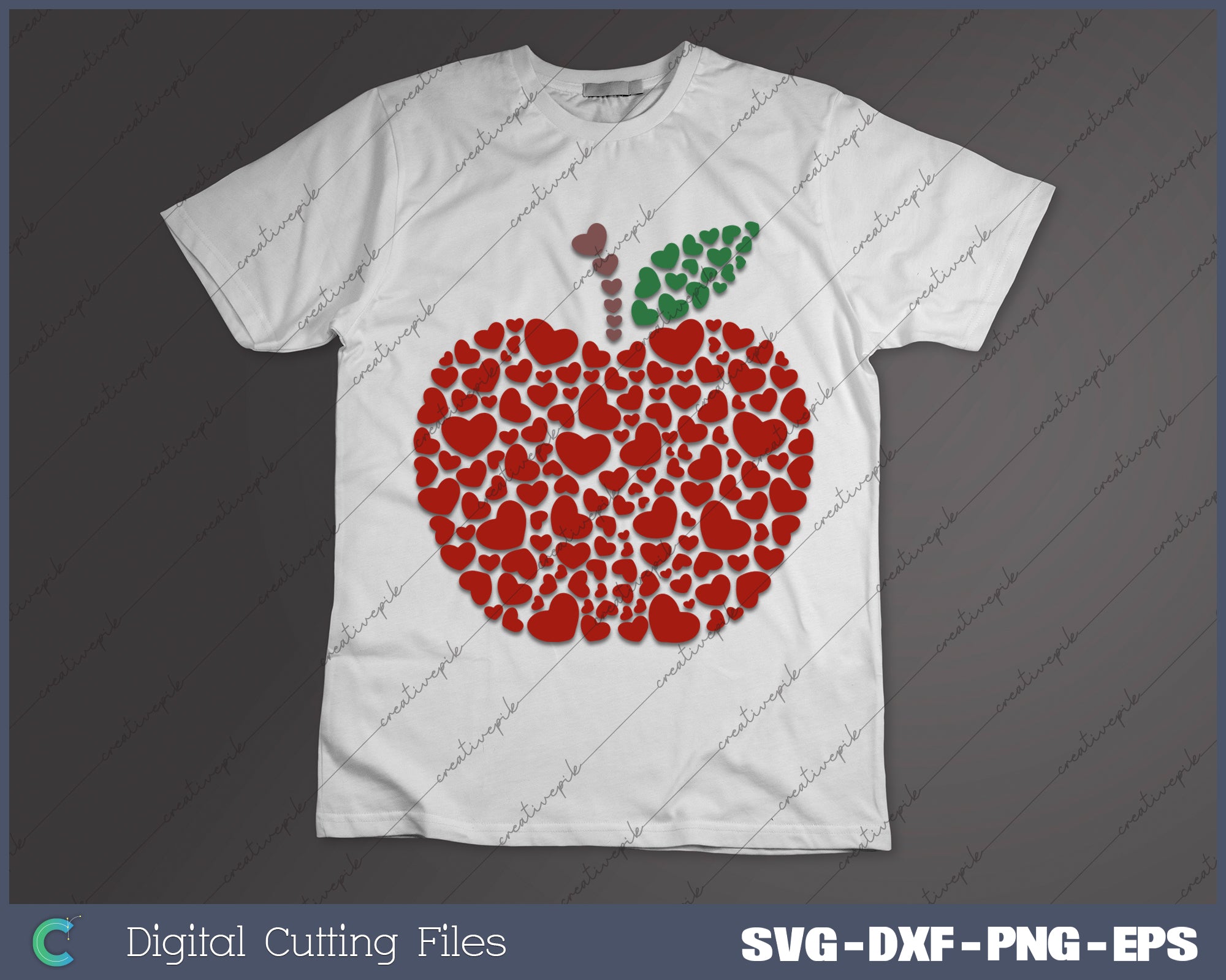 Cute Apple Love Heart Valentines Day SVG PNG Cutting Printable Files