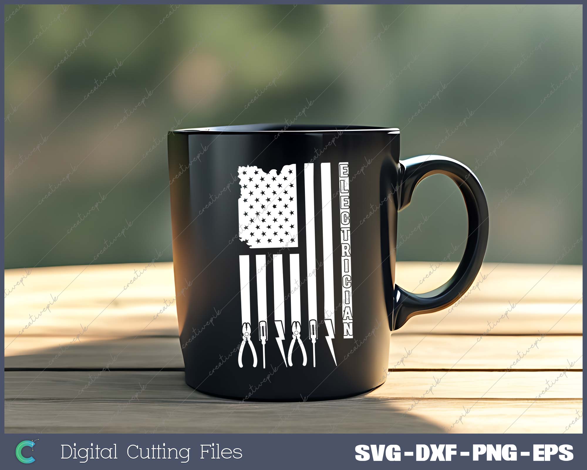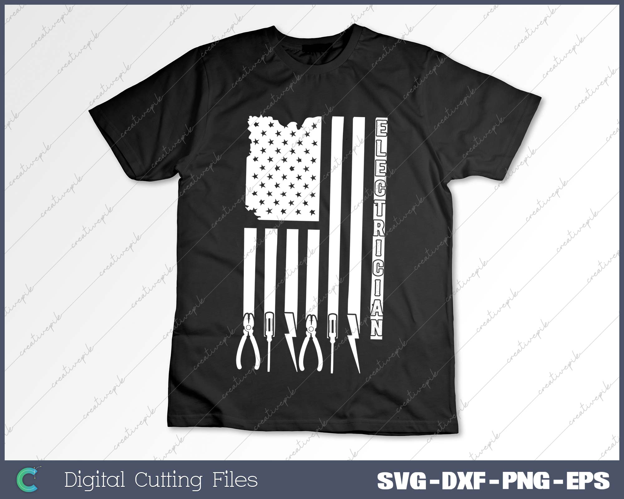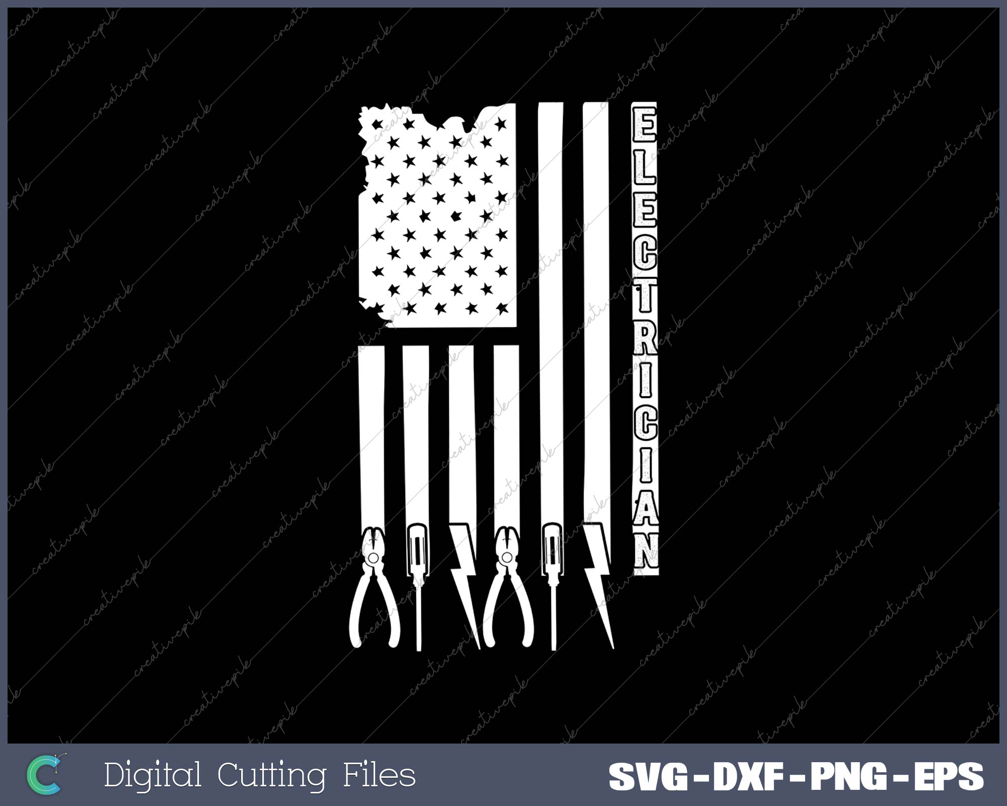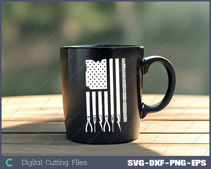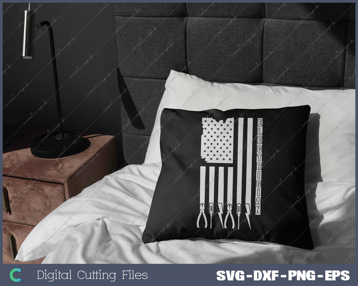 Electrician On USA Flag W Tools SVG PNG Cutting Printable Files