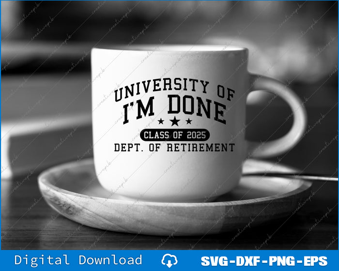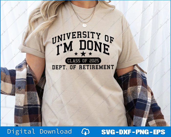 Fun University Of I'm Done Class Of 2025 Teacher Retirement SVG PNG Cutting Files