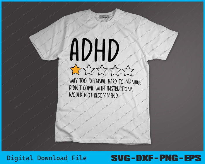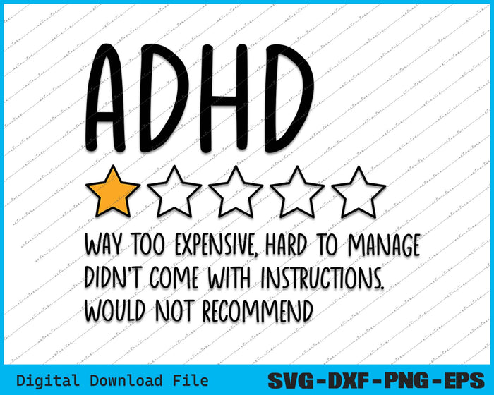 Funny ADHD Quotes 1 Star Review ADHD Awareness SVG PNG Printable Files