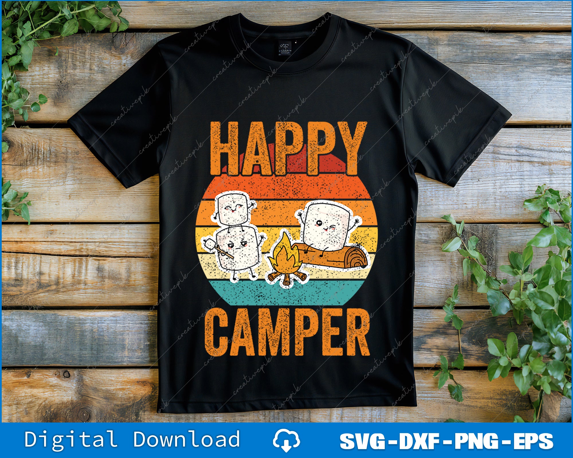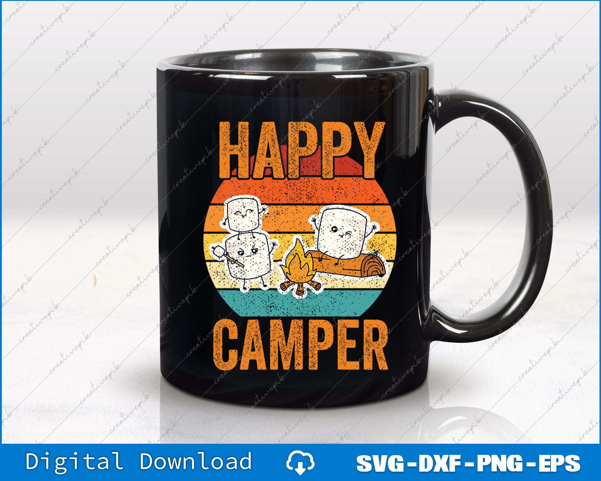 Funny Happy Marshmallow Camper Cute SVG PNG Cutting Printable Files
