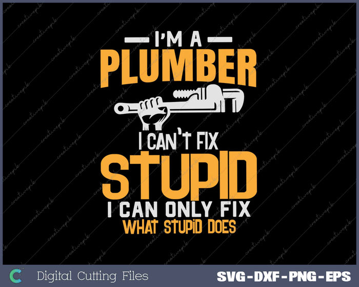 Funny I'm a Plumber, I Can't Fix Stupid Design SVG PNG Cutting Printable Files