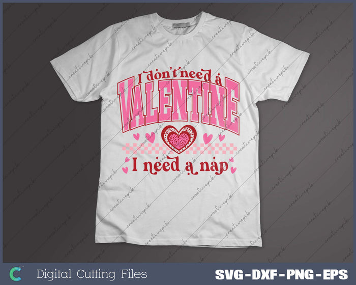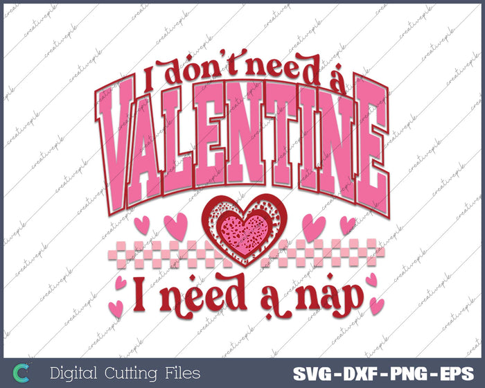 I don't Need A Valentine I Need a Nap SVG PNG Cutting Printable Files