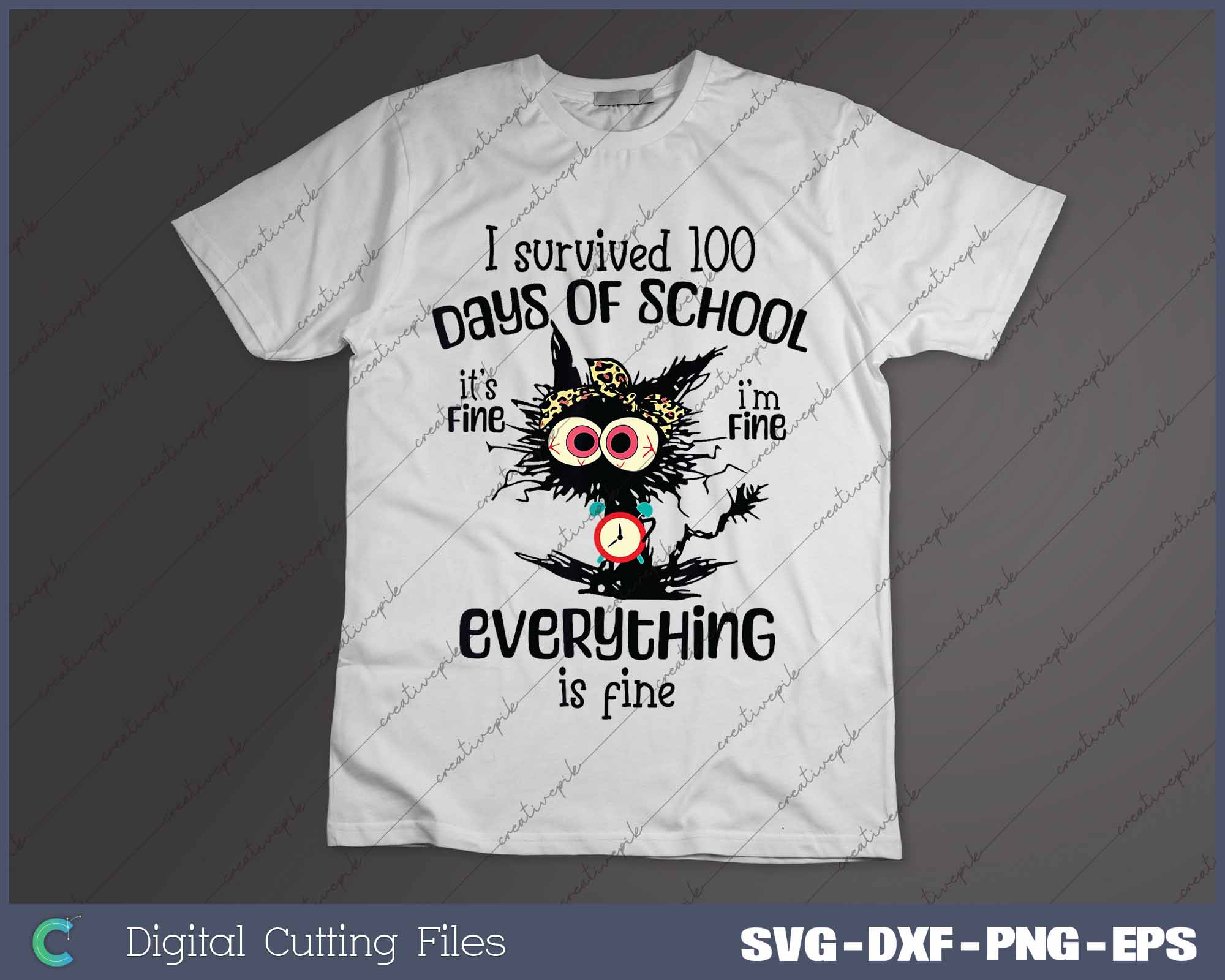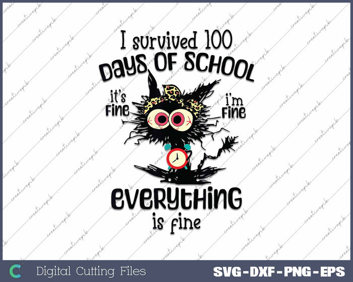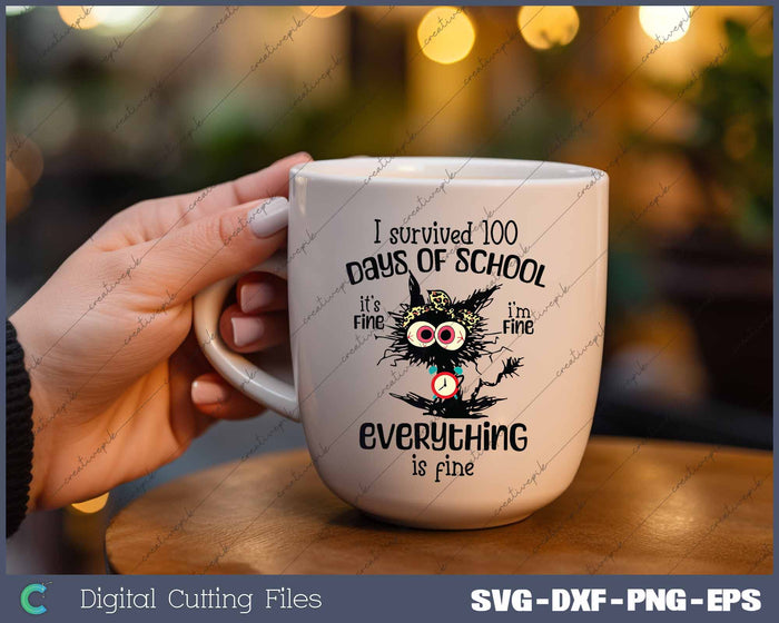 I Survived 100 Days Of School Anxiety It's Fine I'm Fine Everything Is Fine SVG PNG Cutting Printable Files