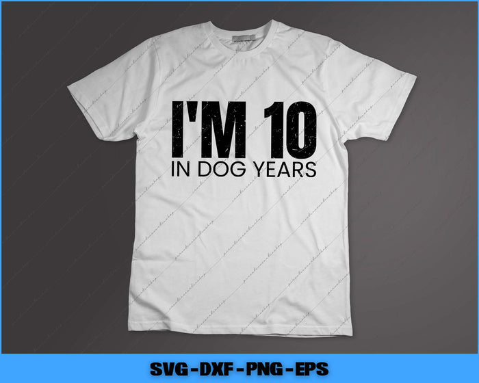 I'm 10 In Dog Years Funny 70th Birthday Svg Png Cutting File