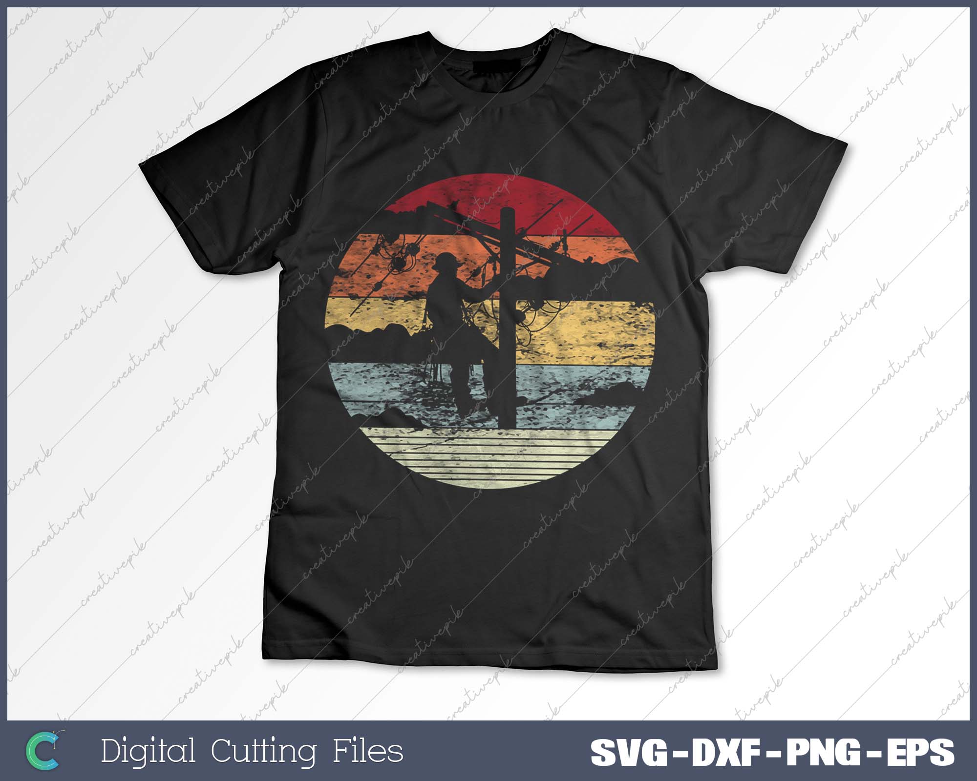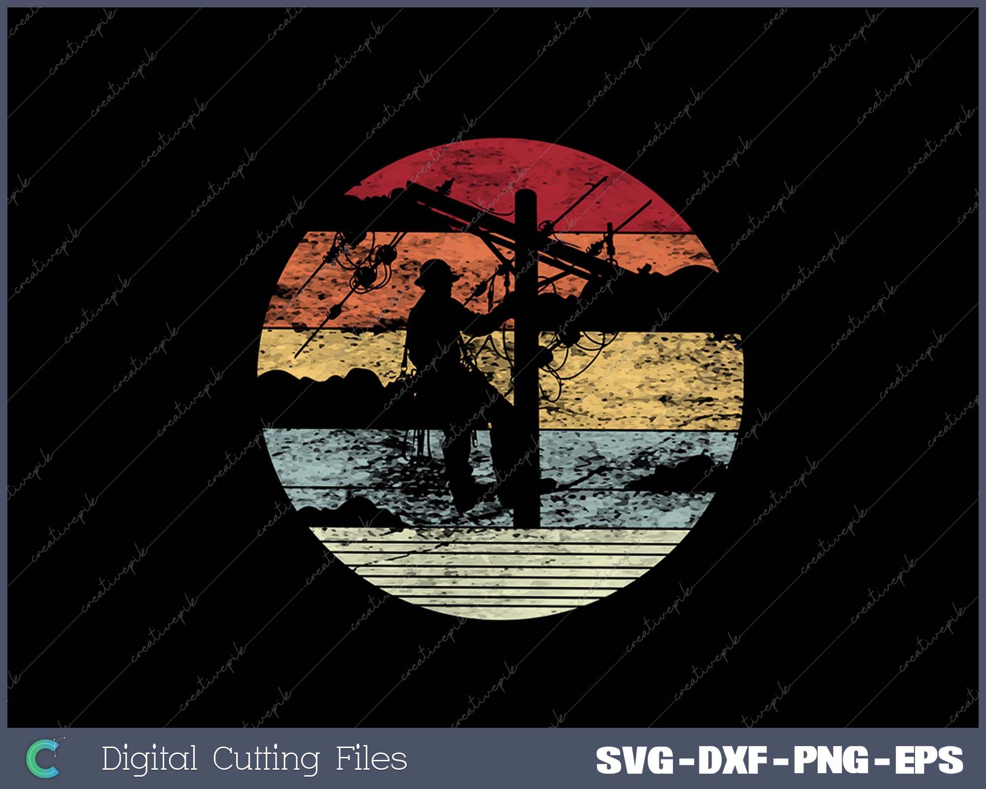 Lineman Retro style Line Worker Utility Pole SVG PNG Cutting Printable Files