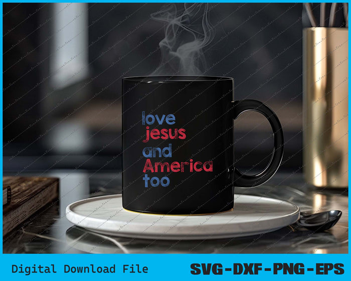 Love Jesus And America Too 4th of July SVG PNG Cutting Printable Files