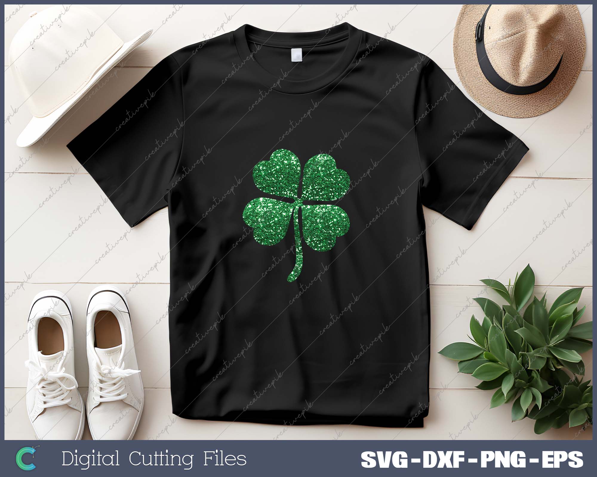 Lucky Glitter Shamrock St Patricks Day SVG PNG Cutting Printable Files