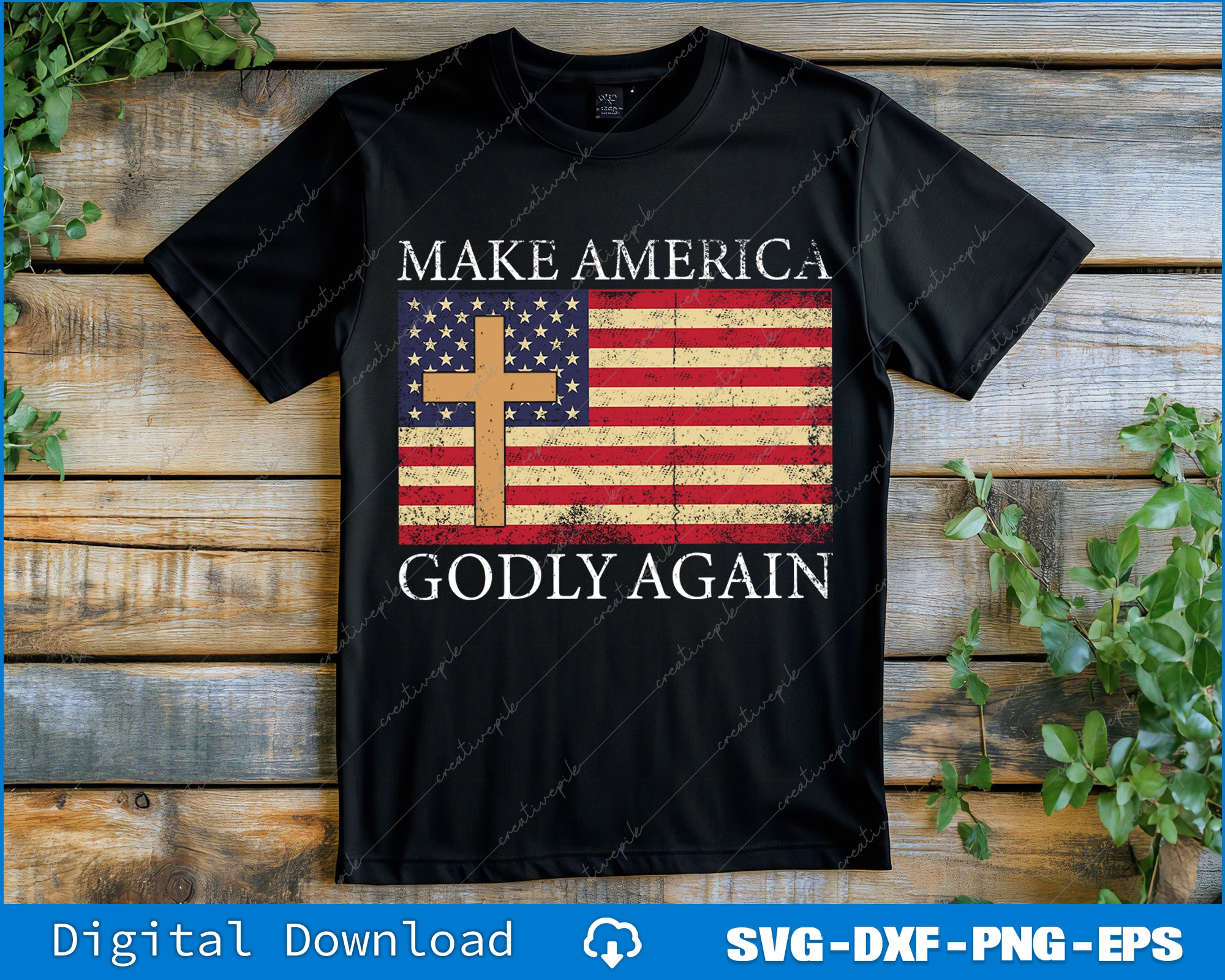 Make America Godly Again American Flag Cross Jesus SVG PNG Printable Files