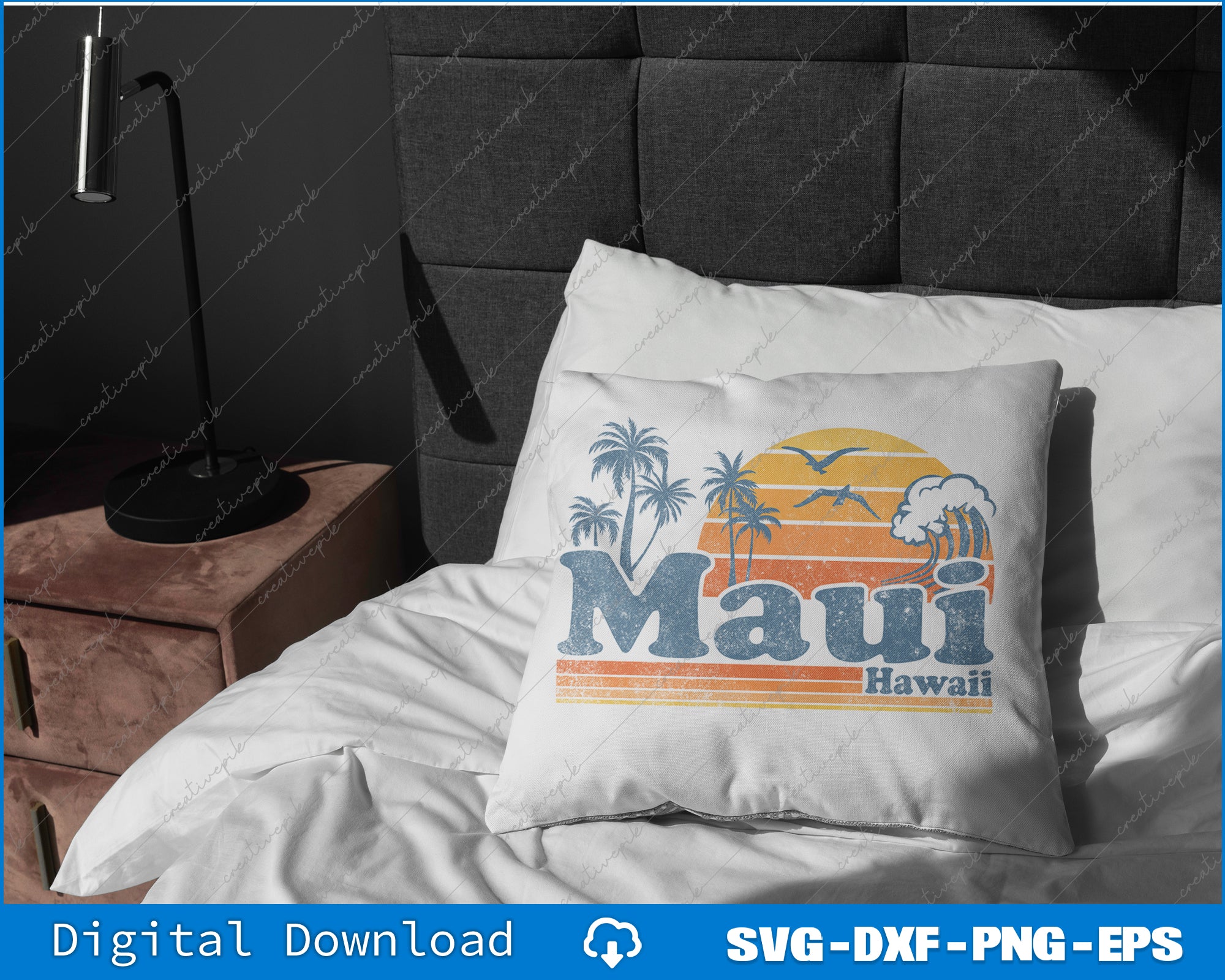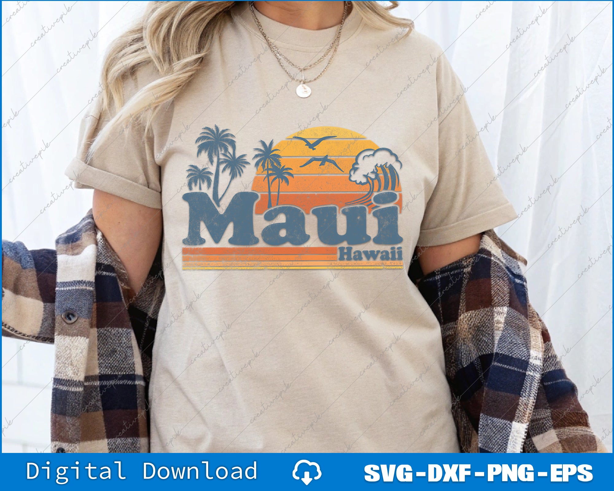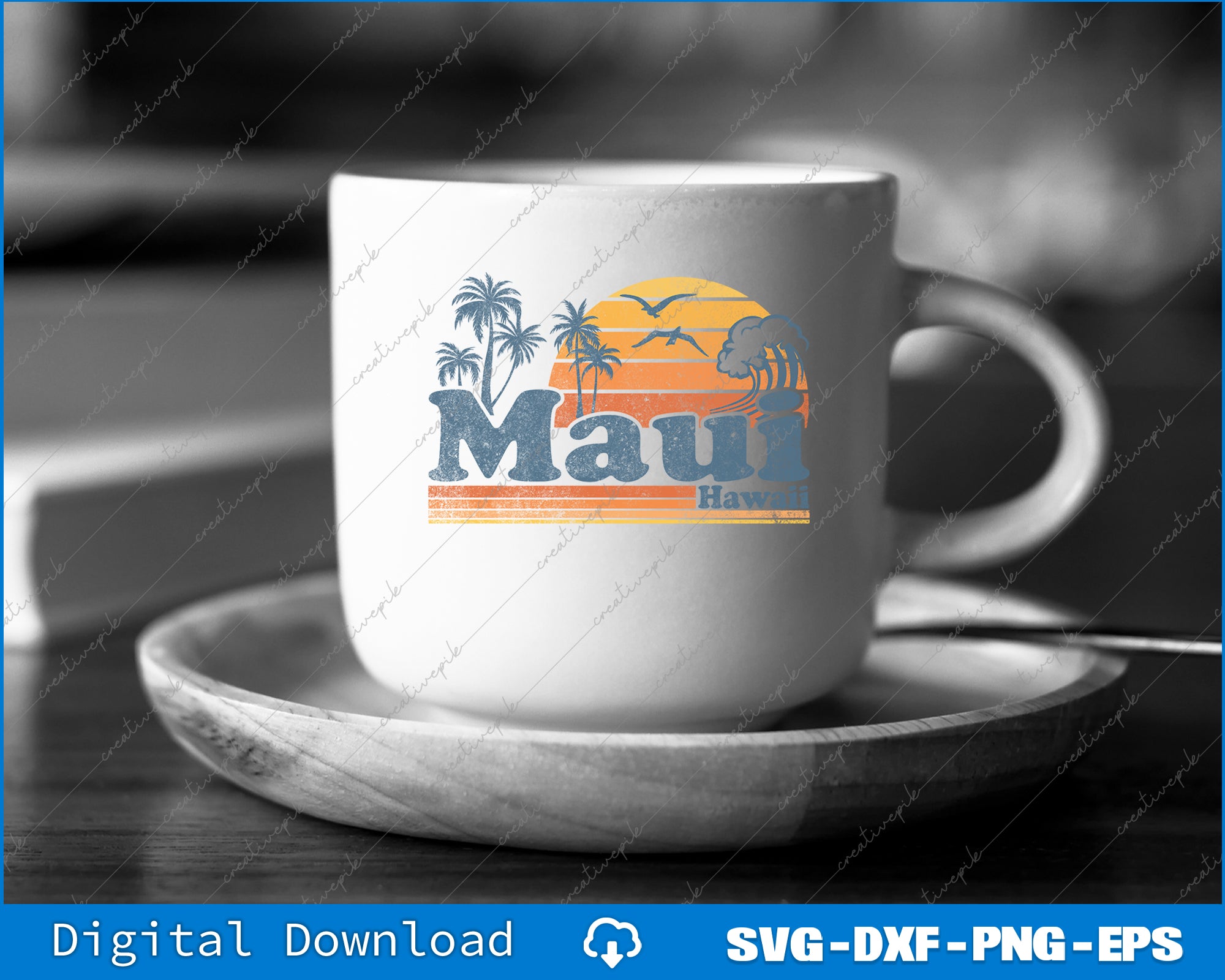 Maui Hawaii Vintage Surf Beach Surfing 70's Retro Hawaiian SVG PNG Printable Files