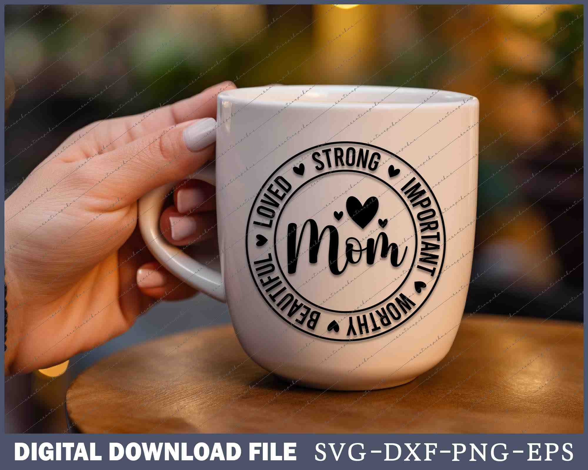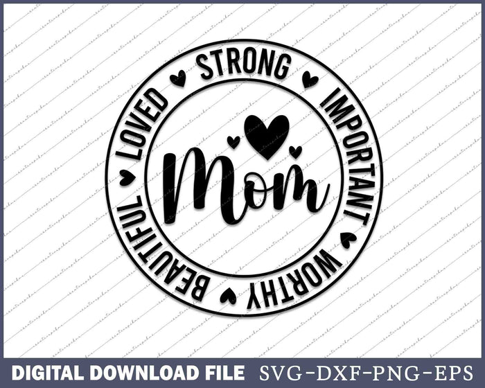 Mom Life Strong Important Beautiful Worthy Loved SVG PNG Cutting Files