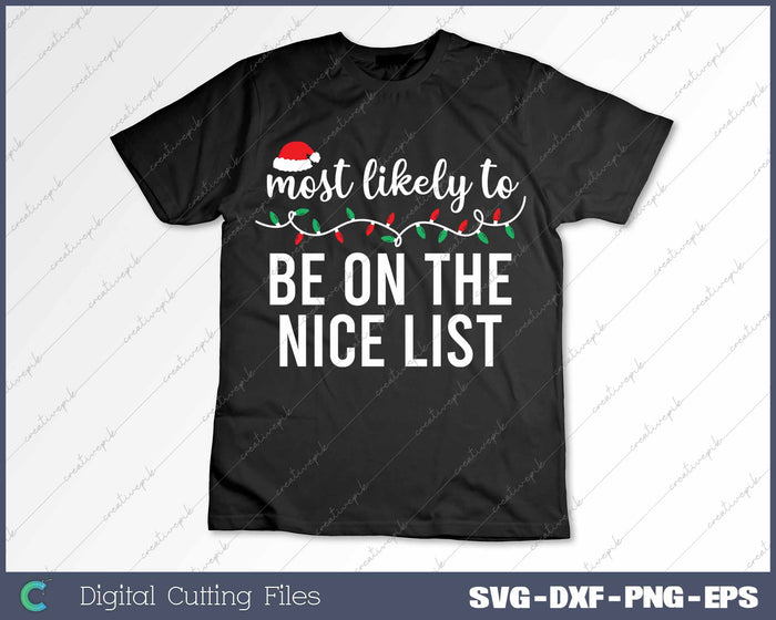 Most Likely To Be On The Nice List Funny Christmas Matching SVG PNG Cutting Printable Files