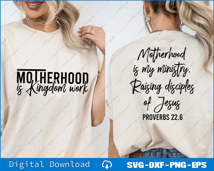 Motherhood Is Kingdom Work, Motherhood Is My Ministry SVG PNG Back And Front Files
