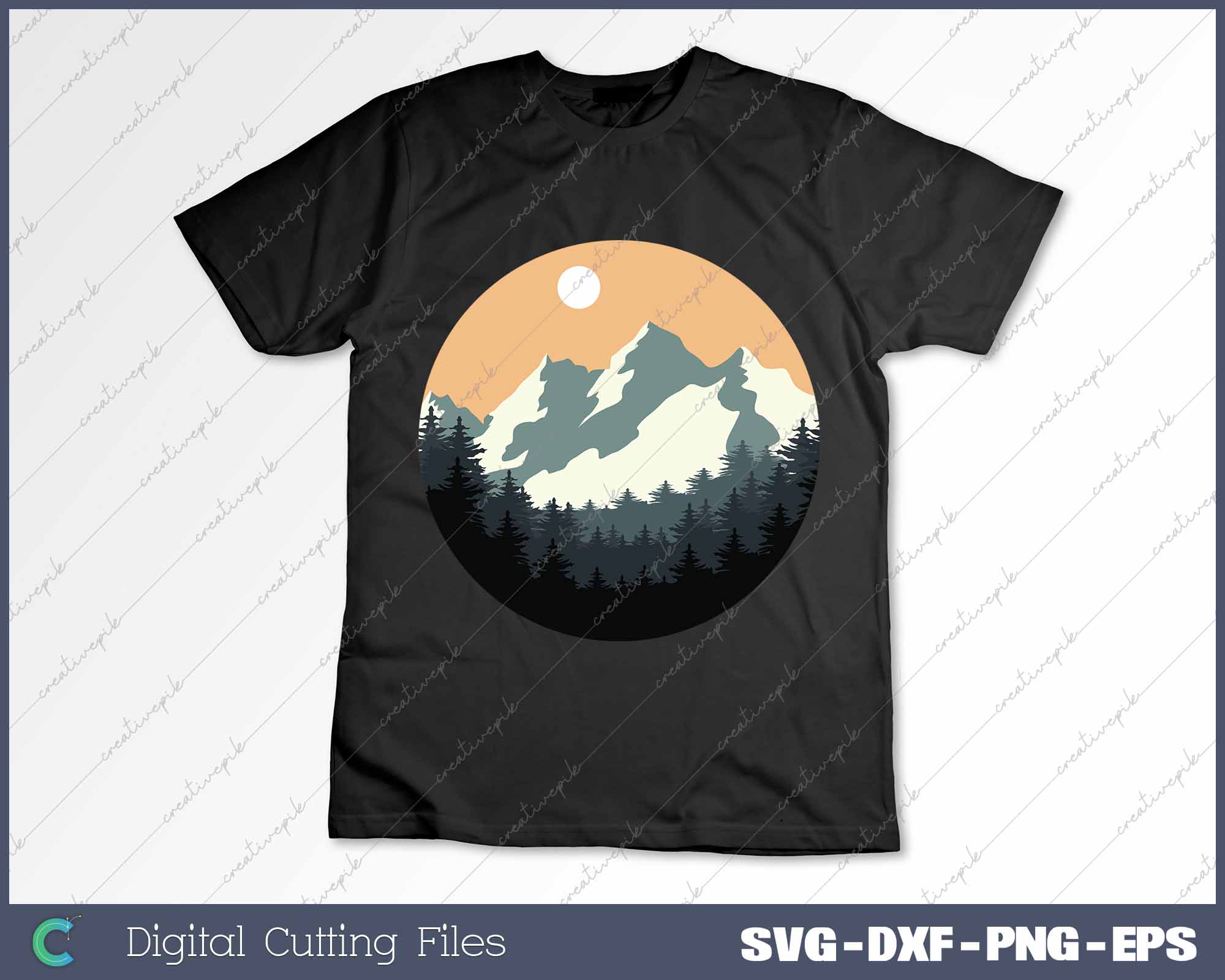 Mountain and Forest Scene Silhouette SVG PNG Cutting Printable Files
