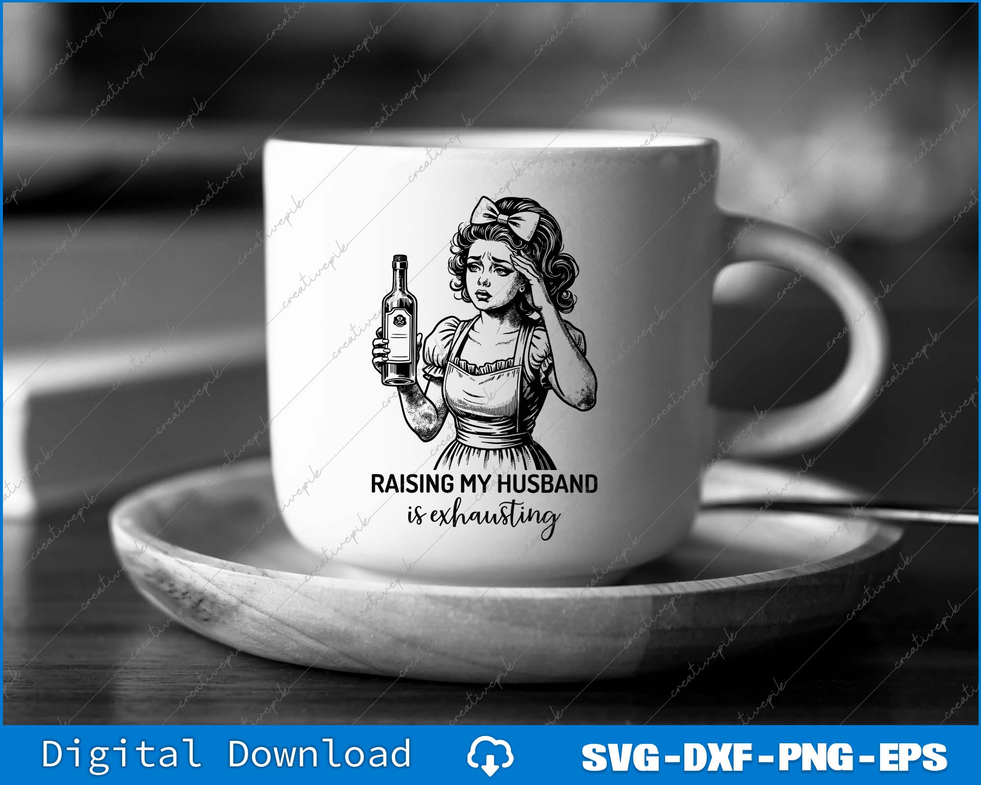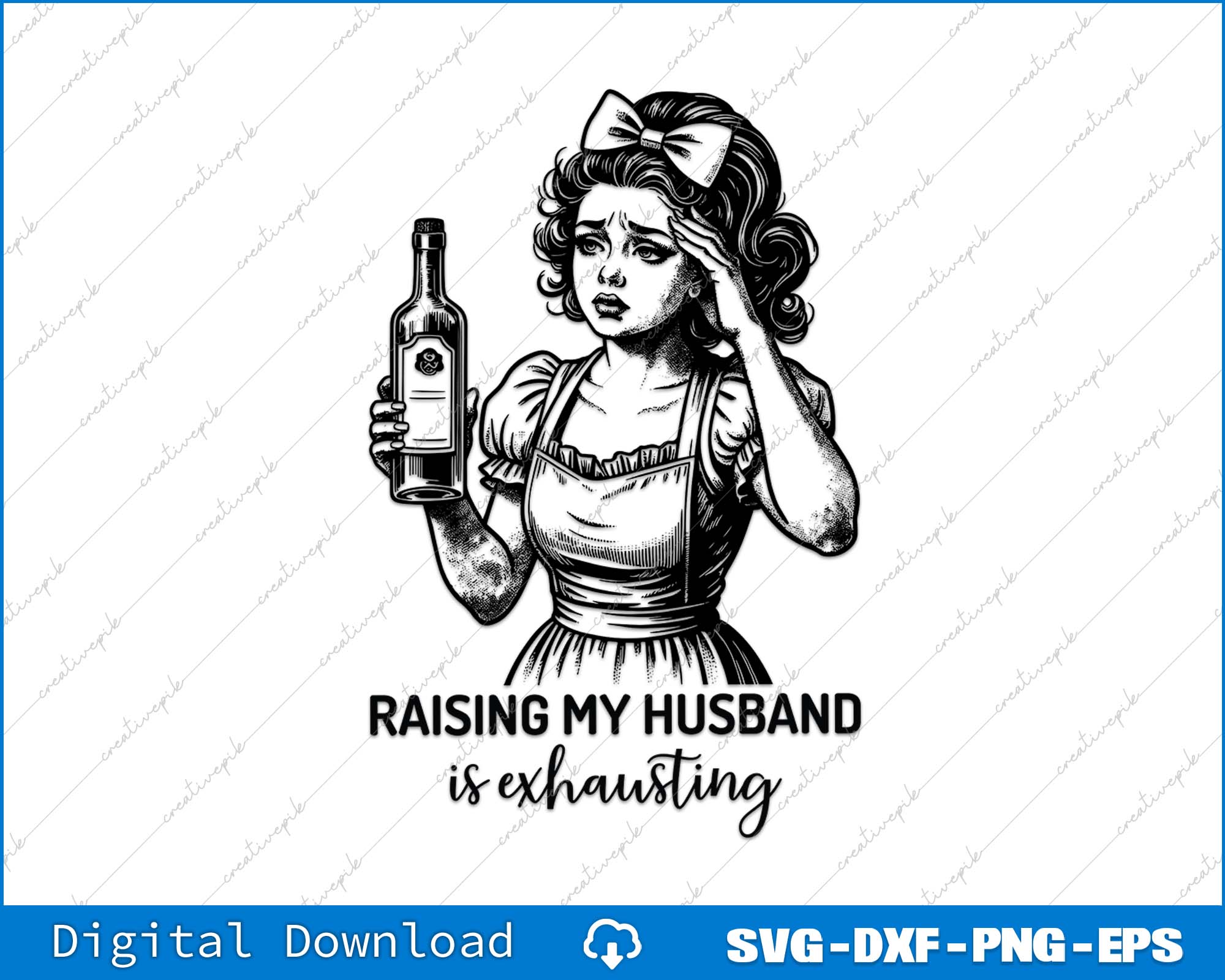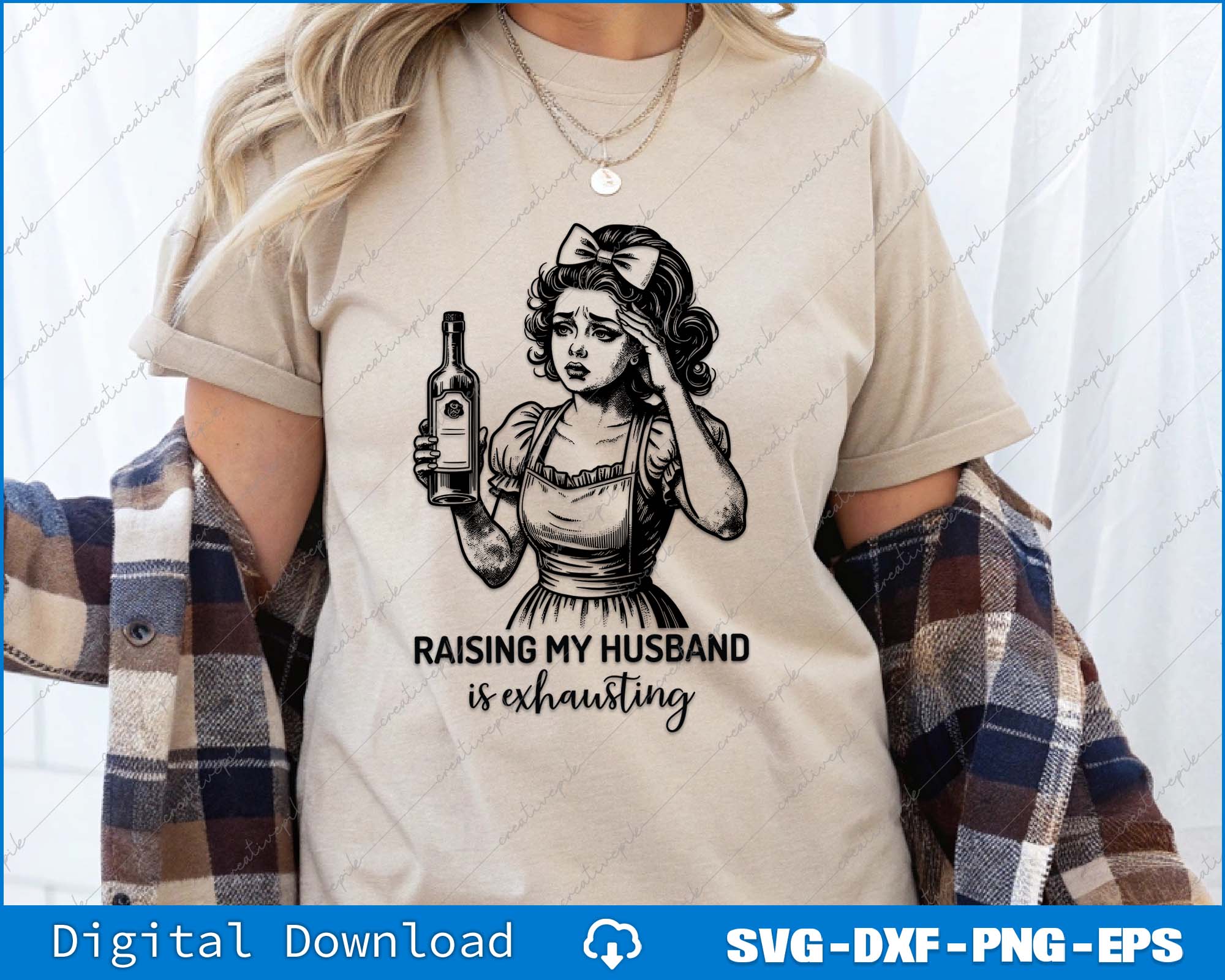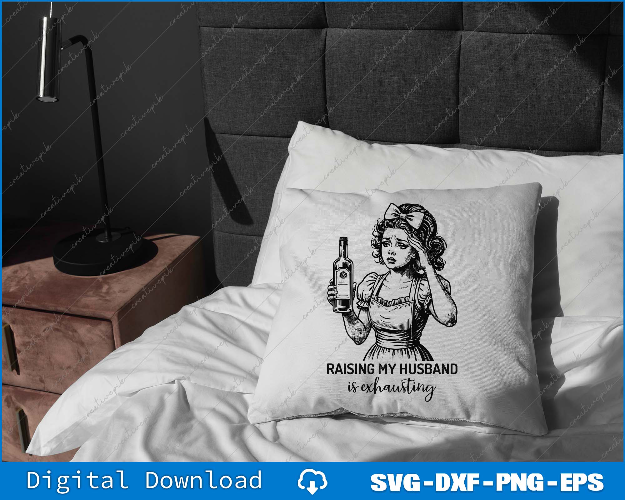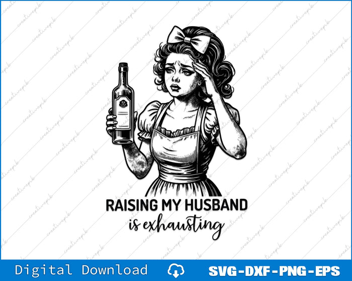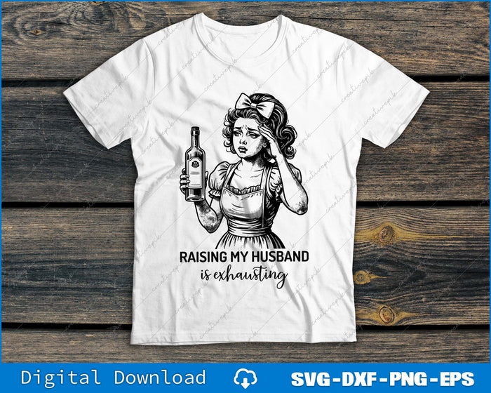 Raising My Husband Is Exhausting Funny Sarcastic Retro Housewife SVG PNG File