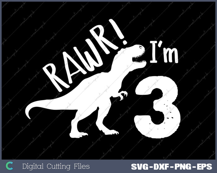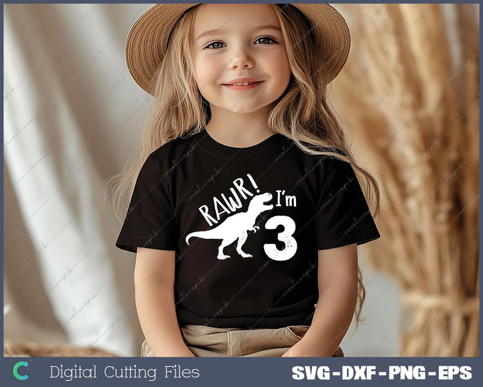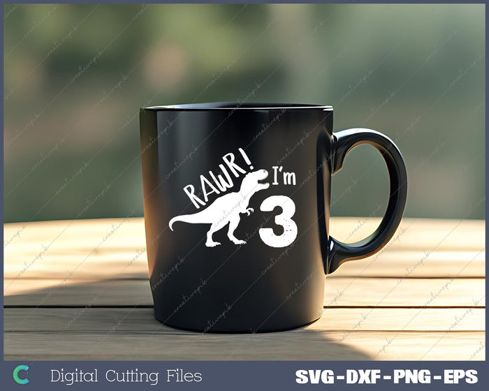 Rawr I'm 3 Binosaur 3rd Birthday SVG PNG Cutting Files