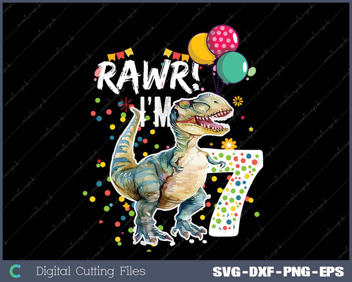 Rawr I'm 7 7th Birthday Party T Rex Dinosaur Gift for Boys SVG PNG Printable Files