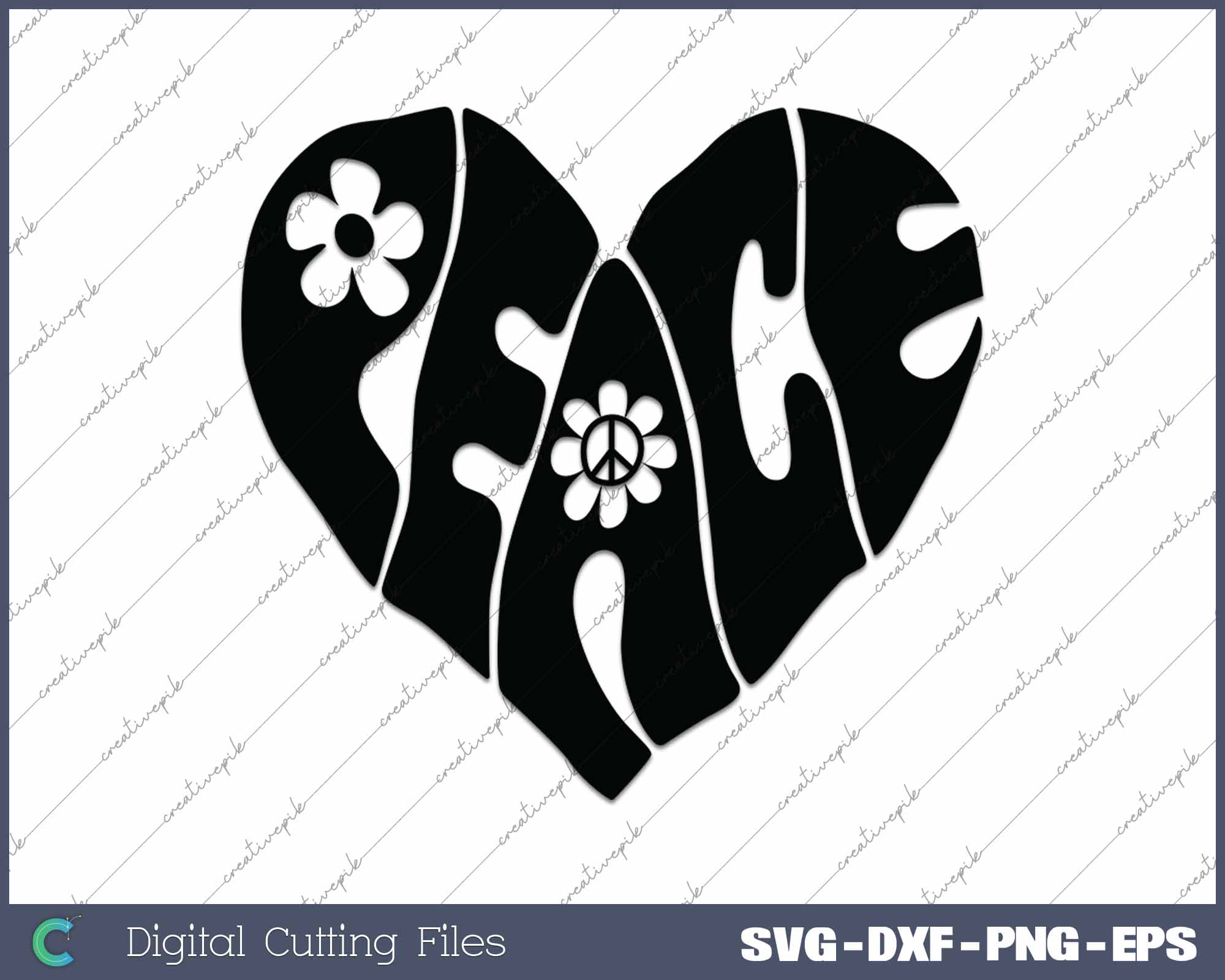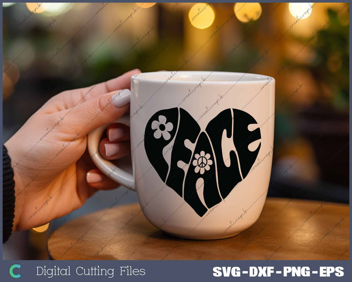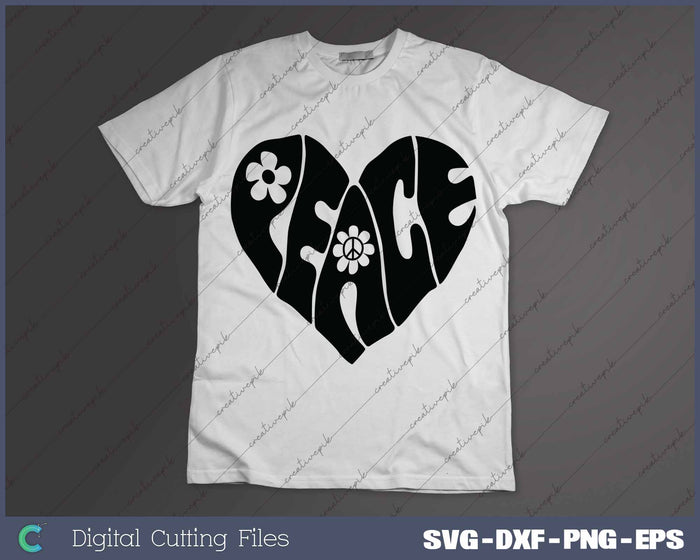 Retro Peace Heart Groovy Hippie SVG PNG Cutting Printable Files