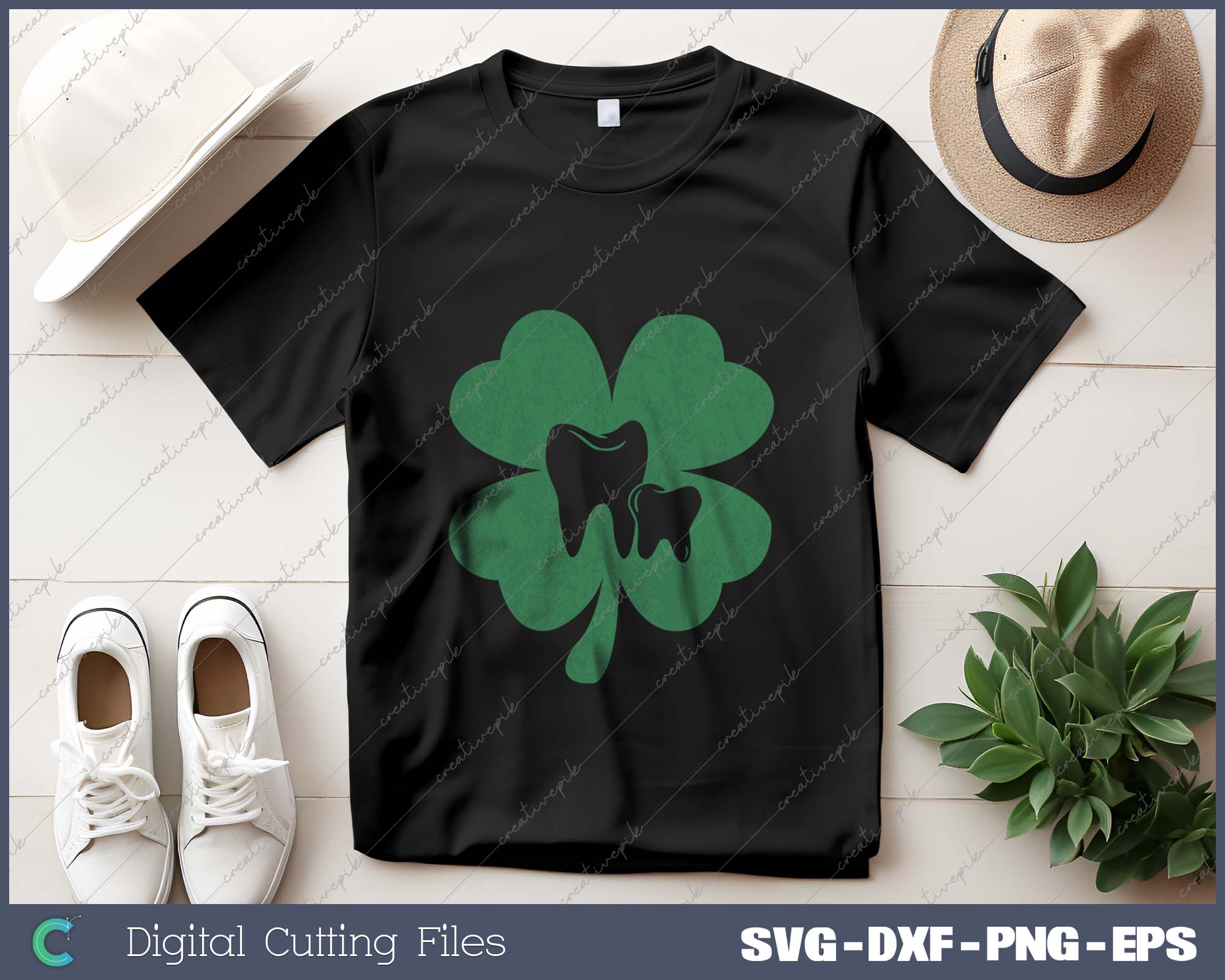 Teeth Shamrock St. Patrick's Day SVG PNG Cutting Printable Files