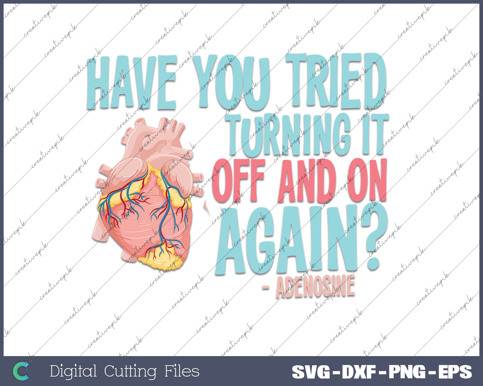 Turn it off and on again Adenosine Cardiac Nurse SVG PNG Printable Files