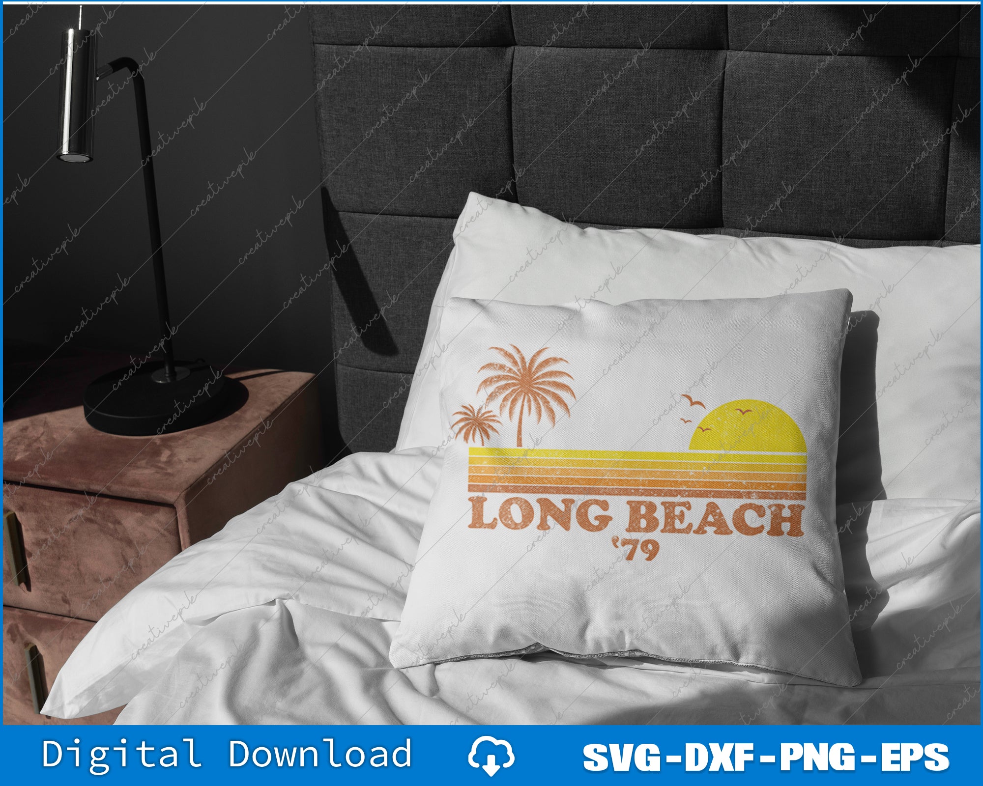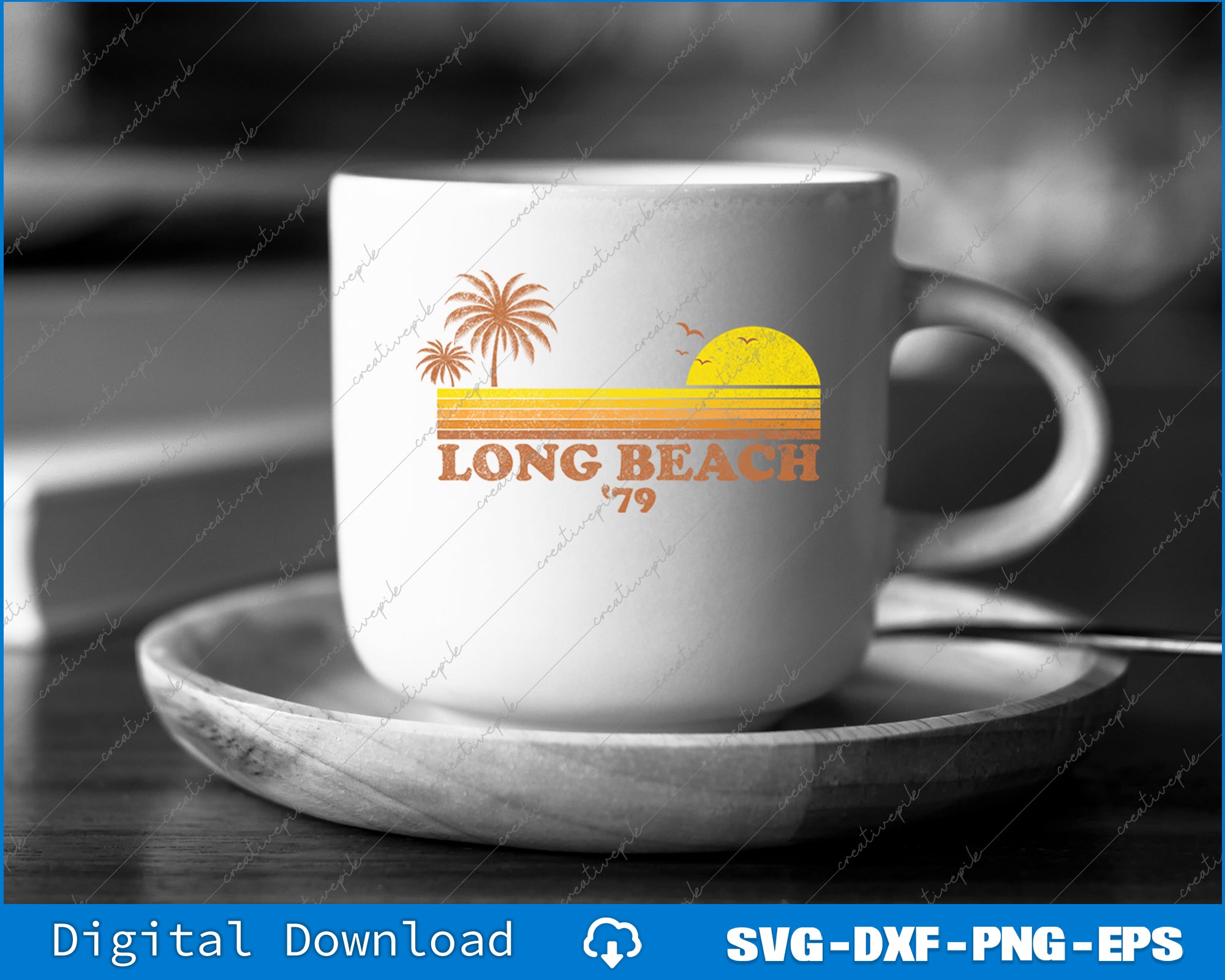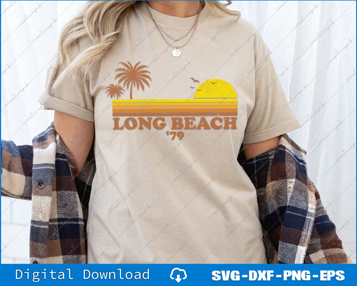 Vintage Long Beach California Retro Sunset Surfing 70's SVG PNG Printable Files
