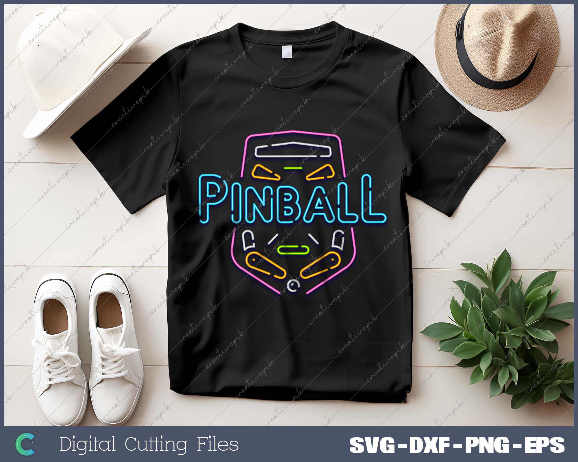 Vintage Retro Pinball Flipper SVG PNG Cutting Printable Files