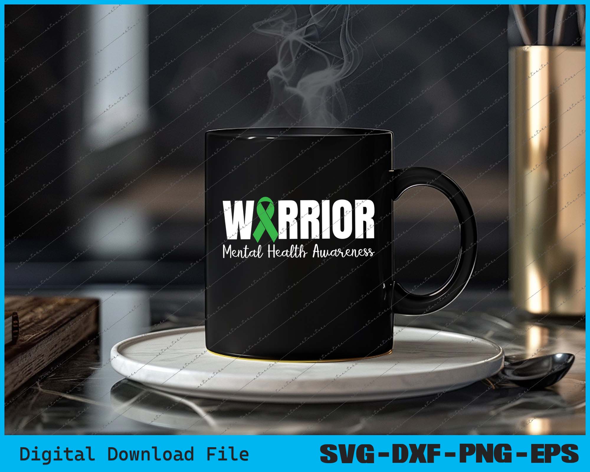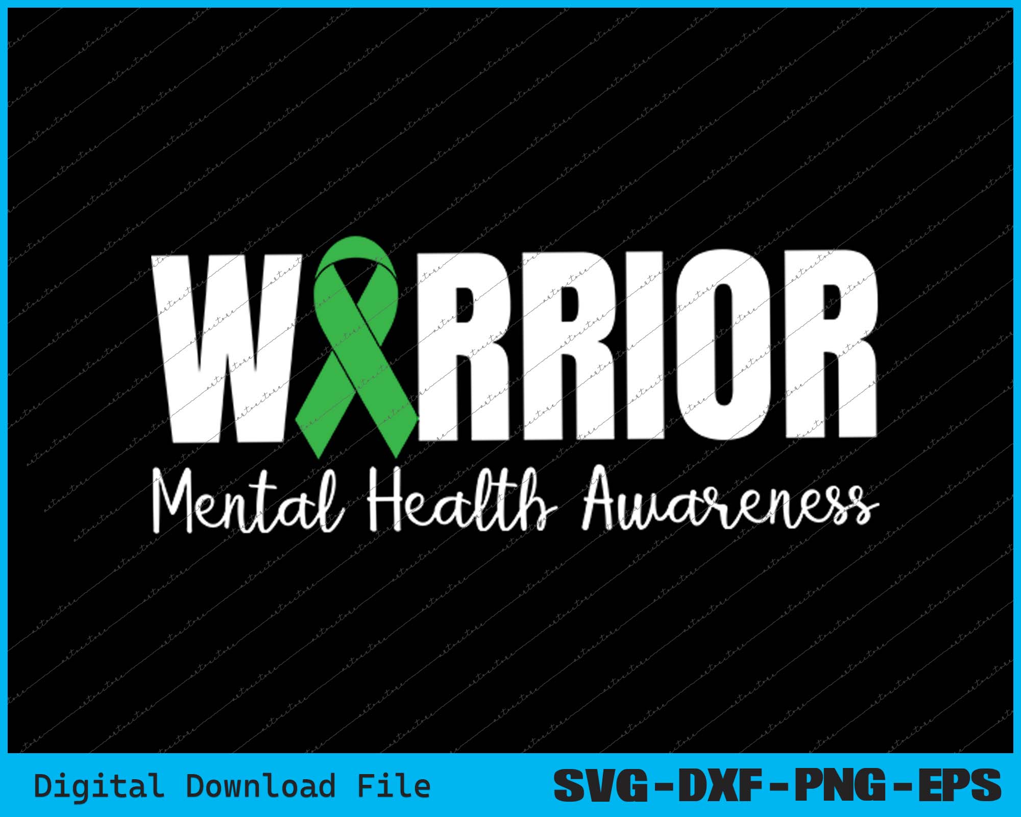 Warrior Mental Health Awareness Green Ribbon SVG PNG Printable Files