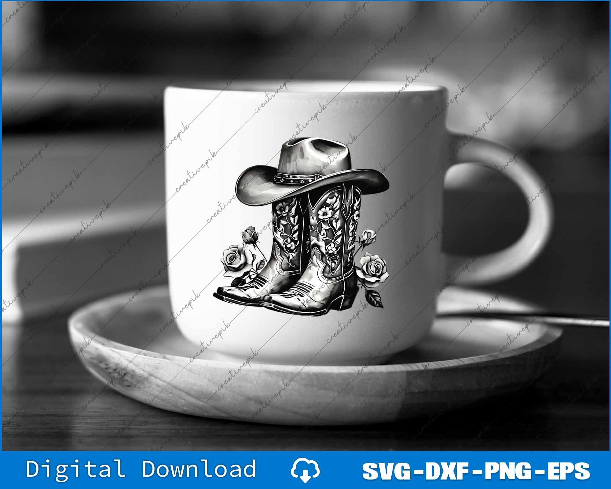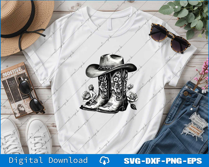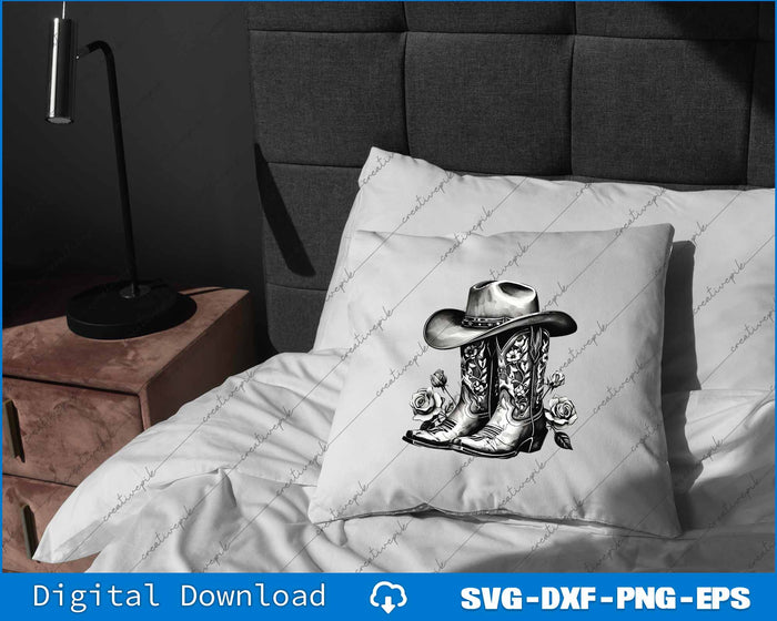 Western Flowers Cowboy Boots SVG PNG Cutting Printable Files